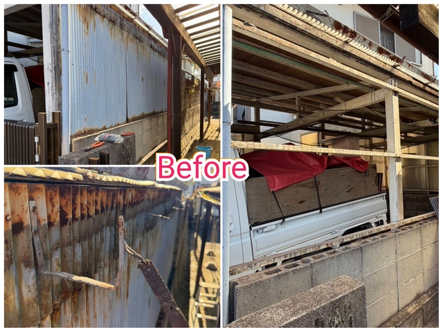 車庫の側面の、古くなって錆びて傷んだ波板の張替えをさせていただきました!
